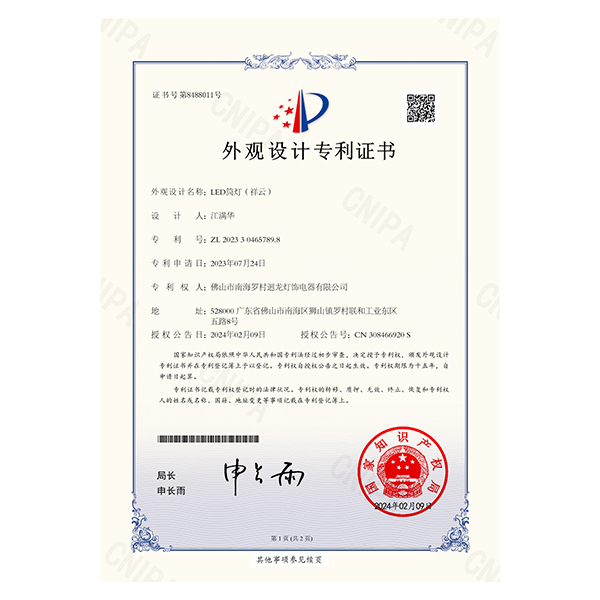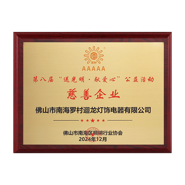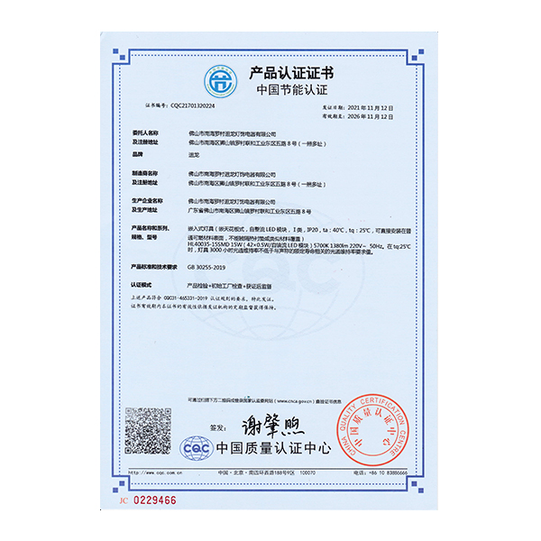 迴龍燈飾通過(guò)ISO9001國(guó)際質(zhì)量體系認(rèn)證,2010年被《環(huán)球市場(chǎng)》評(píng)定為GMC中國(guó)優(yōu)質(zhì)制造商,先后加入了南海照明協(xié)會(huì)、CSA國(guó)家半導(dǎo)體照明工程產(chǎn)業(yè)聯(lián)盟、廣東省照明學(xué)會(huì)等,產(chǎn)品通過(guò)CCC、CQC、CE等認(rèn)證。