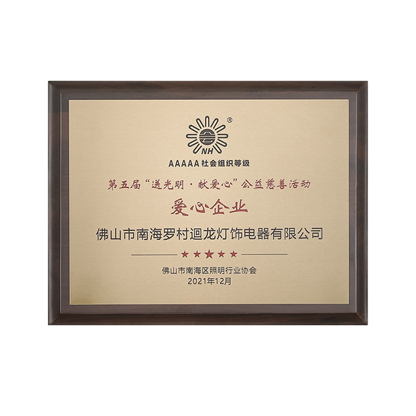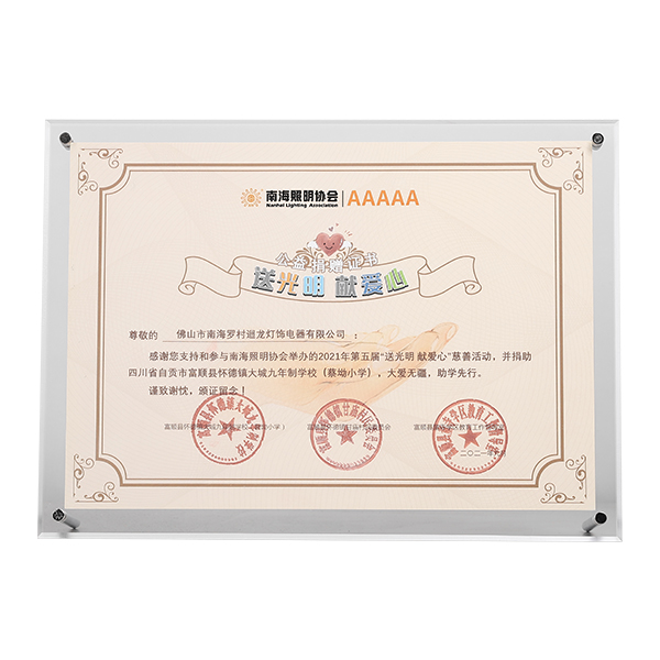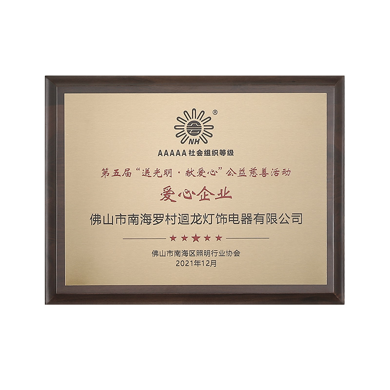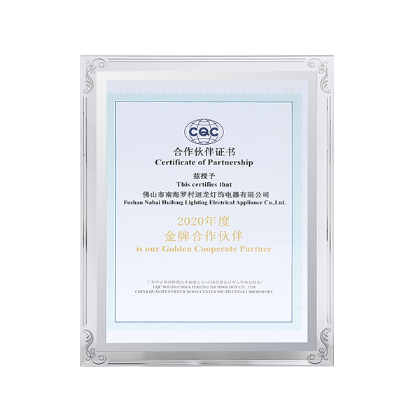 迴龍燈飾通過ISO9001國際質(zhì)量體系認(rèn)證,2010年被《環(huán)球市場》評(píng)定為GMC中國優(yōu)質(zhì)制造商,先后加入了南海照明協(xié)會(huì)、CSA國家半導(dǎo)體照明工程產(chǎn)業(yè)聯(lián)盟、廣東省照明學(xué)會(huì)等,產(chǎn)品通過CCC、CQC、CE等認(rèn)證。