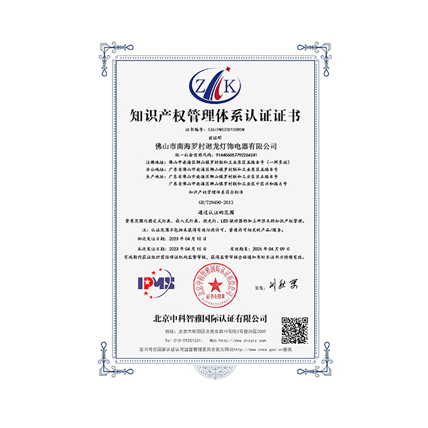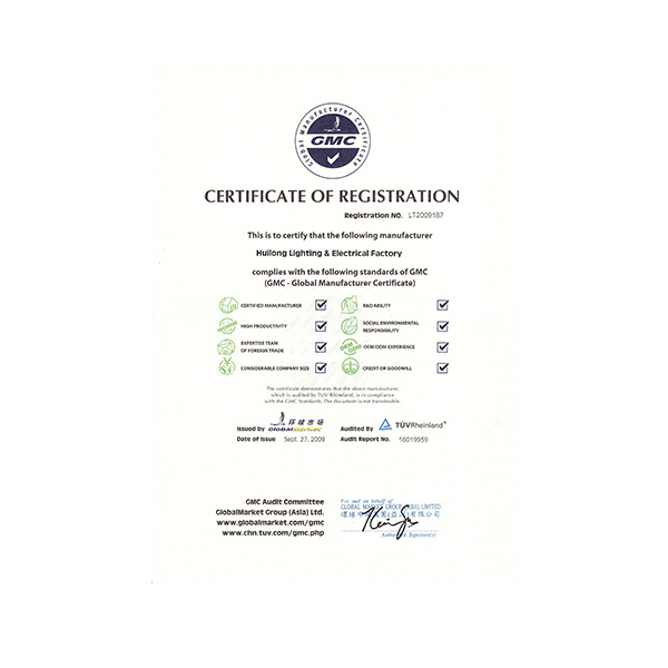 迴龍燈飾通過ISO9001國際質(zhì)量體系認(rèn)證,2010年被《環(huán)球市場》評定為GMC中國優(yōu)質(zhì)制造商,先后加入了南海照明協(xié)會、CSA國家半導(dǎo)體照明工程產(chǎn)業(yè)聯(lián)盟、廣東省照明學(xué)會等,產(chǎn)品通過CCC、CQC、CE等認(rèn)證。
