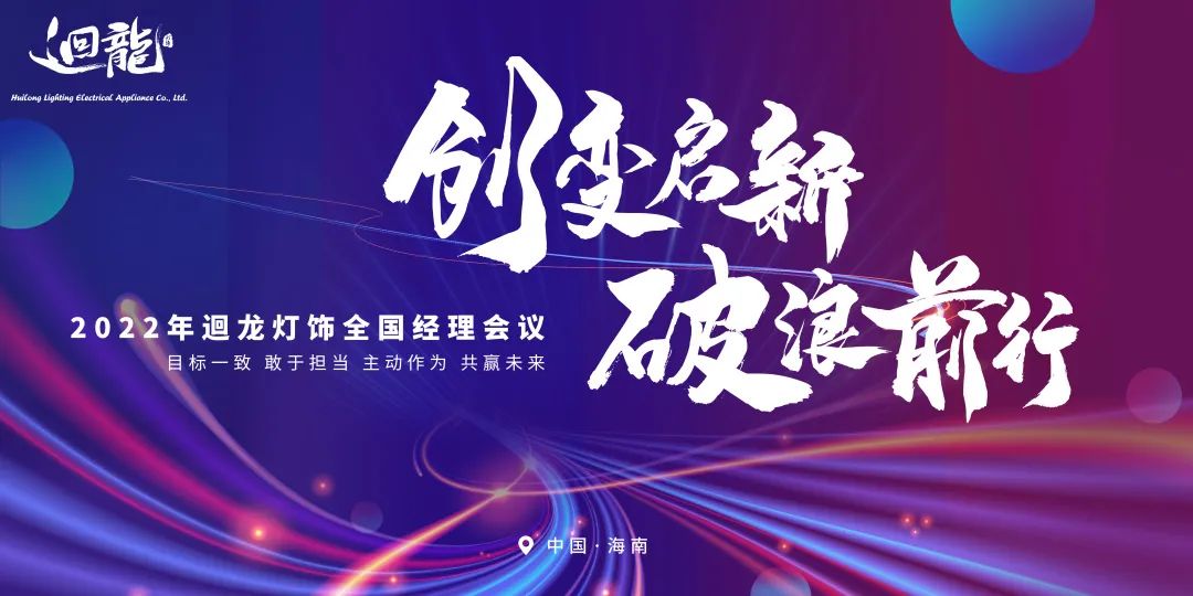 近日,迴龍燈飾在這座富有自然旖旎風(fēng)光的海濱城市---???,隆重召開 2022 年迴龍燈飾全國經(jīng)理會議,以“創(chuàng)變啟新·破浪前行”為會議主題,?意著迴龍燈飾在“創(chuàng)變”中逆勢突圍,在“啟新”中搭建未來、再啟新程,在迴龍人共同努力下,相信一定能乘風(fēng)破浪、逐浪前行,再創(chuàng)迴龍新輝煌。
